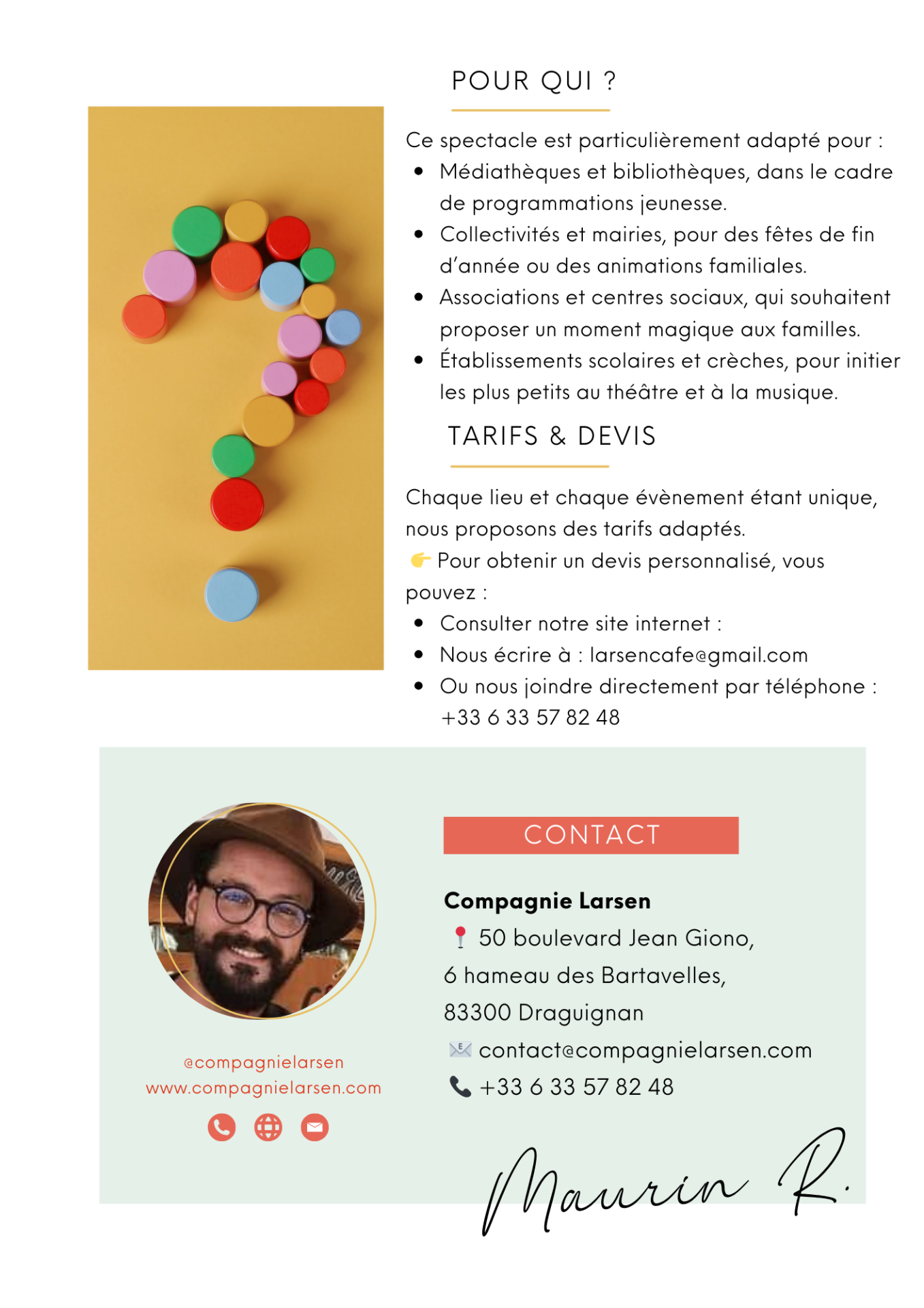 Vous souhaitez commander ce spectacle, ou un autre du même genre ?