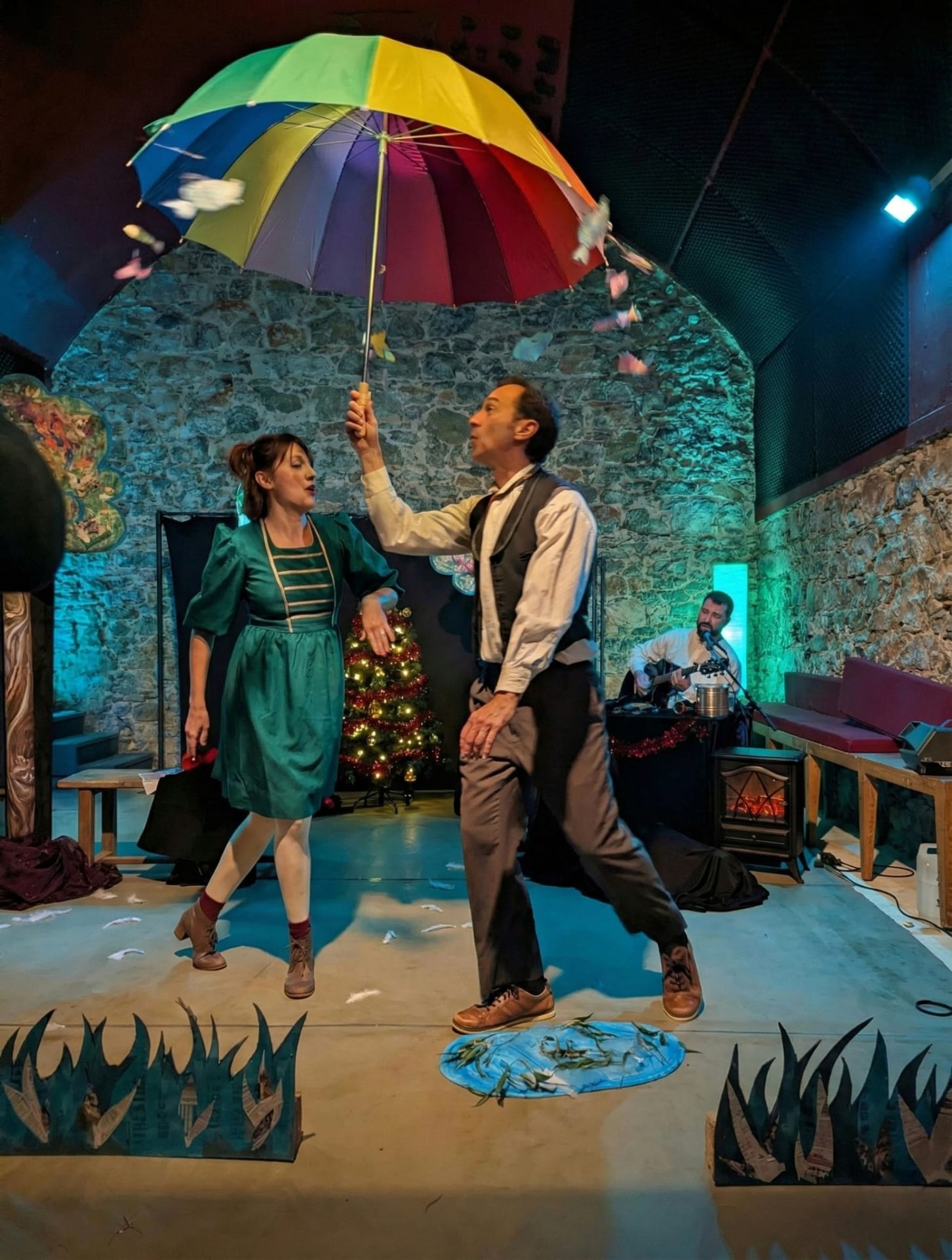 Au fil de l’histoire, la scène se transforme : bulles légères, neige qui tombe, théâtre d’ombres derrière la fenêtre… tout un univers sensoriel pensé pour émerveiller les plus jeunes. Les enfants rient, participent et chantent.